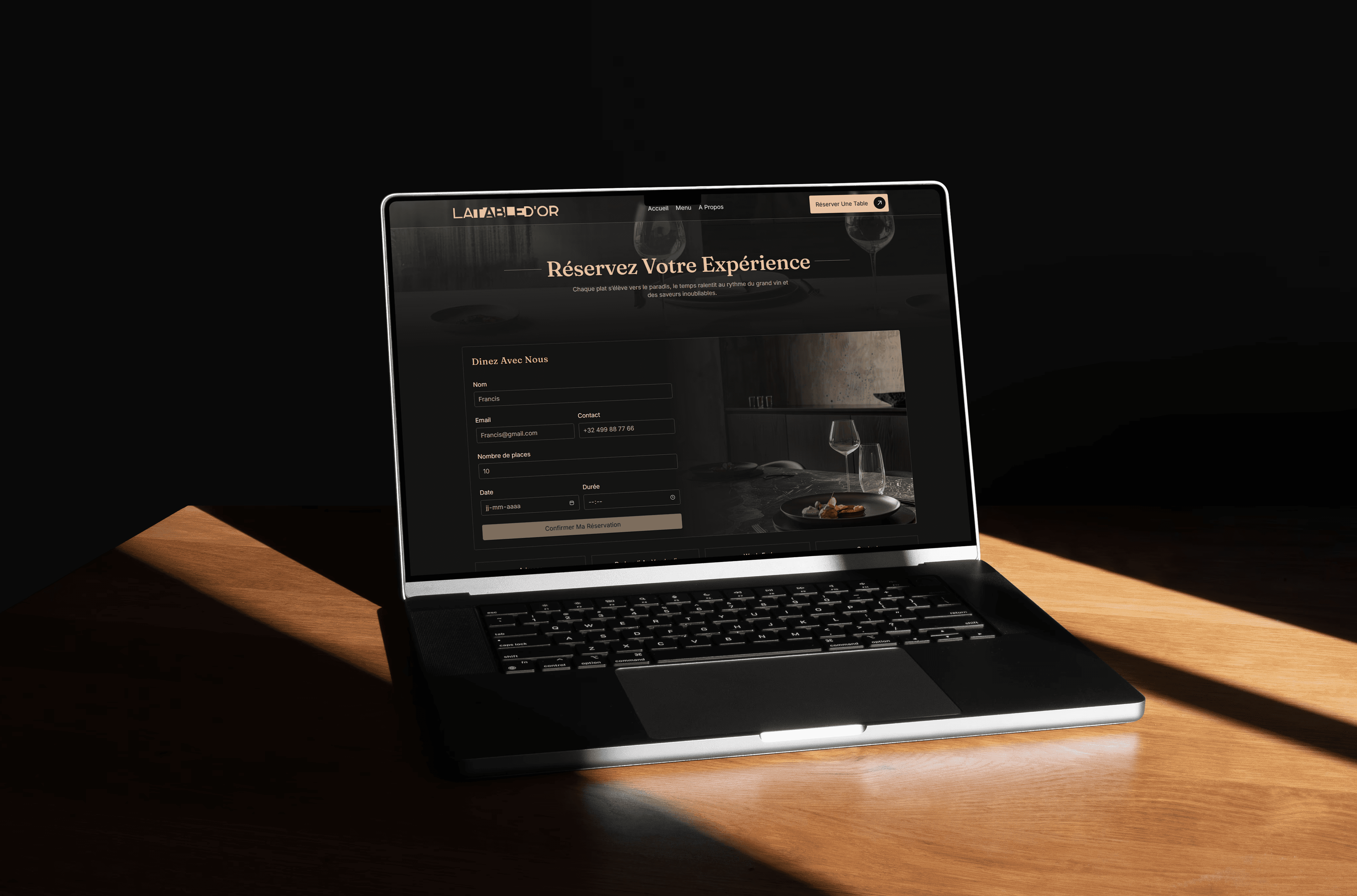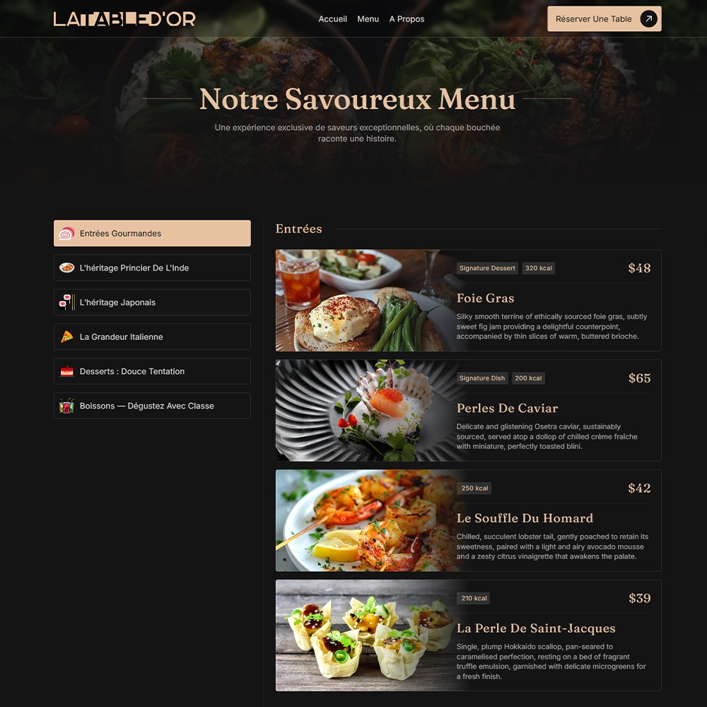 Grâce à ce travail approfondi – allant de la création du logo et de ses déclinaisons, au design des supports imprimés (carte de visite, menu), jusqu’à la conception d’un site web sur mesure – La Table d’Or bénéficie désormais d’une image professionnelle, luxueuse et mémorable.