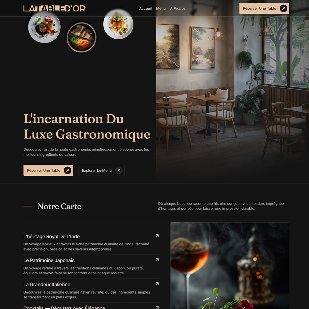 La réalisation du branding complet ainsi que du site internet pour La Table d’Or a permis de donner au restaurant une identité visuelle forte, cohérente et élégante, en parfaite adéquation avec son positionnement haut de gamme.